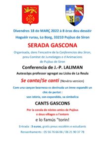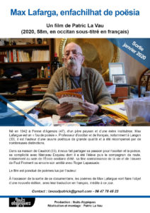 Le vendredi 1er avril, à 20h, le Cinéma Jean Eustache de Pessac va projeter le documentaire de Patric La Vau: Cantar la lenga (soutenu par la Région Nouvelle-Aquitaine )