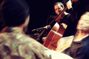 De l’enfer industriel de Fos-sur-Mer à la rive arlésienne du Rhône, la CRAU -dernière steppe d’Europe occidentale- fait le lit du réel. C’est sur les fonds de cette mer bordée d’usines, assoupie dans la sobriété de son déploiement immense, que les trois musiciens de DE LA CRAU ont imaginé la bande-son de leur périple. Ils sont partis d’un chant qui éventre les cieux, auquel répondent en puissance et en poésie la contrebasse, les percussions et le déchaînement extatique de la mandole.