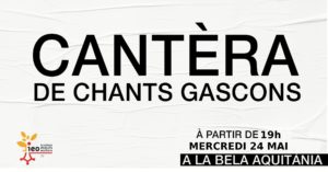 En Gascogne, une "cantèra" est l'occasion de se rencontrer de façon festive (le plus souvent dans un café) entre amoureux de la Langue et du Chant occitan. Ce mercredi 24 mai, à partir de 19h, à Bordeaux / Bordèu, café Bèla Aquitània - 25, rue de Cursol - L'OSTAU OCCITAN vous propose de venir vous associer le temps d'une dizaine de chants occitans simples, avec possibilité de les agrémenter de voix d'accompagnement et de musique. Guitaristes et flûtistes seront bienvenus pour accompagner les chants. Les textes des chants seront distribués sur place. Petite nouveauté: Tederic présentera un quizz de chansons occitanes.