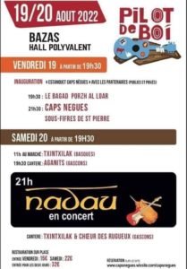 N'oubliez pas de réserver vos soirées du 19 et 20 aout pour le festival "Pilot de boi" au hall polyvalent de Bazas - sud Gironde